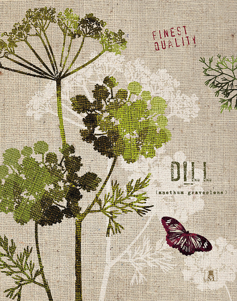 Embrace nature's serenity with this exquisite botanical art print, a splendid addition to any wall decor collection. Titled "Dill (Anethum graveolens)," this piece exudes rustic charm, featuring a delicate illustration of the elegant dill plant set against a canvas-textured background that creates the illusion of a timeless linen fabric. The subtle hues of green and the intricate details of the dill's umbel flowers are highlighted beautifully, capturing the essence of the plant with scientific precision, and evoking a feeling of vintage herbal illustrations. Complementing the botanical artwork is a gorgeously rendered butterfly, boasting deep red and purple tones which add a vibrant touch and celebrate the biodiversity of nature. Printed with "Finest Quality" inscribed atop, this art print promises exceptional craftsmanship and enduring appeal, making it perfect for an herb-themed kitchen, a quaint café, or a cozy living room. The marriage of classic illustration with contemporary design elevates this piece to a versatile work of art that suits a variety of interior styles, from farmhouse to modern minimalist. Each print is made with high-quality materials ensuring longevity and is suitable for framing, allowing you to create the ideal home interior. Whether you're a lover of herbal imagery, a culinary enthusiast, or searching for that perfect piece of wall art to complete your curated space, this dill botanical print will not disappoint. Add a touch of greenery and charm to your walls without the need for a green thumb!For more art by Studio Mousseau click here.
