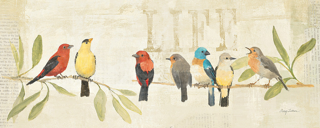 Elevate the ambiance of any room with our charming Bird Perch Art Print, a serene addition to your wall decor collection. This exquisite piece features a delightful row of eight colorful birds perched gracefully on a branch, rendered in soft hues that evoke a sense of calm and tranquility. The artwork is elegantly set against a vintage-inspired background with subtle script elements, adding a touch of literary charm and depth to the composition. Perfect for bird lovers and those who appreciate the beauty of nature, this art print brings a slice of the outdoors into your living space. Its soothing palette comprises earthy reds, gentle yellows, and tranquil blues, making it versatile enough to complement a wide range of interior design themes, from rustic farmhouse to contemporary minimalist. Ideal as a focal point in your living room, bedroom, or office, this print adds a sophisticated flair to your home decor. It comes ready to frame or can be ordered as a canvas, allowing for a customizable presentation that suits your style. The Bird Perch Art Print is not only a feast for the eyes but also serves as a conversation starter, inviting viewers to appreciate the simple joys and beauty of nature. Whether you're redecorating, looking for the perfect housewarming gift, or simply treating yourself to a new piece of art, this print is sure to uplift any space with its enchanting and peaceful presence. Add this timeless wall art to your collection today and enjoy the peaceful aura it brings to your environment.For more art by Avery Tillmon click here.