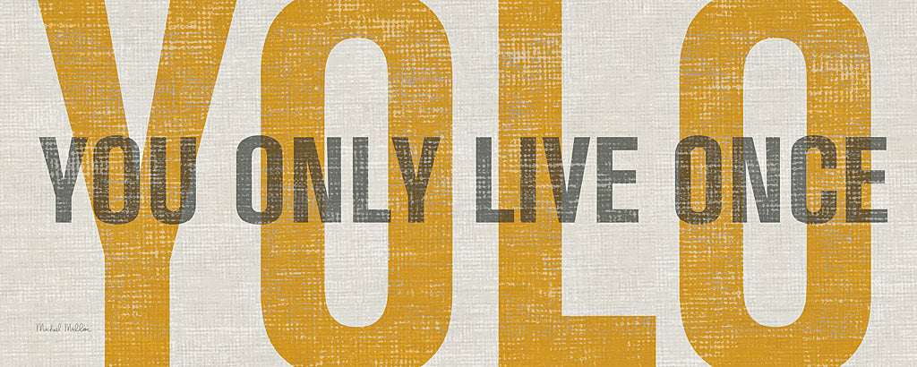 Embrace the boldness of contemporary living with this strikingly motivational "YOLO (You Only Live Once)" canvas art print. Expertly crafted to inspire and energize any living space, this modern wall art piece features large, impactful letters in warm, inviting shades of golden yellow and soft, subtle gray, set against a textured beige background that mimics the sophistication of linen fabric. The print's minimalist design approach makes it a perfect match for a variety of decor styles, from chic urban lofts to cozy, contemporary homes. Each letter in the acronym "YOLO" is artistically rendered to stand out, encouraging viewers to seize the day and live life to the fullest. Whether you're looking to add a touch of modern elegance to your living room, inspire creativity in your office, or bring a positive vibe to your bedroom, this art print is versatile enough to enhance any area. Measuring generously, this high-quality fine art print is ready to be the centerpiece of your wall decor, inviting conversations and reminding everyone of life's ephemeral beauty. It's an ideal choice for those seeking to express their zest for life through home decor, making it a thoughtful gift for graduates, entrepreneurs, or anyone embarking on a new life adventure. Make a statement in your interior design with this "YOLO" art print and infuse your daily environment with a daily dose of inspiration and style.For more art by Michael Mullan click here.