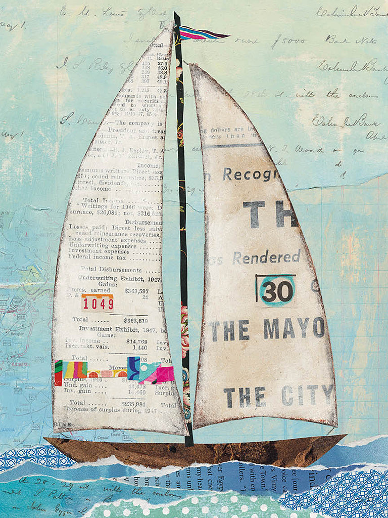 Transform your living space into a haven of tranquility with our Nautical Vintage Collage Art Print. Perfect for adding a touch of coastal charm to any room, this wall decor item is a must-have for sea lovers and art enthusiasts alike. The art print features a beautifully textured sailboat, its sails crafted from an intriguing blend of vintage documents, creating a stunning collage effect that is sure to captivate and inspire. The soothing pastel blues and pops of vibrant colors provide a serene backdrop, reminiscent of the ocean's calming presence. This unique wall art seamlessly combines the allure of maritime adventure with the nostalgia of historical ephemera, making it an ideal accent piece for those looking to enhance their home decor with a sophisticated, artistic touch. Display this exquisite piece in your living room, bedroom, or home office, and let it sail you away into a world of peaceful contemplation and timeless elegance. Shop this exquisite nautical art print today and anchor your wall decor with style and sophistication.For more art by Courtney Prahl click here.
