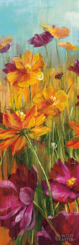 Elevate your home decor with this exquisite floral art print, a brilliant addition to any room seeking a touch of nature's beauty. The tall, narrow canvas features a vibrant, hand-painted field of flowers stretching upwards towards the sky. Vivid shades of yellow, orange, and deep purple blossoms are set against a serene blue backdrop, creating a lively yet balanced color palette that can complement a variety of interior styles. This fine art piece showcases a textured brushstroke effect, adding a three-dimensional quality and artisanal charm to the print. Perfect for adding a splash of color and elegance to your living room, bedroom, or hallway, this wall decor brings the outdoors in, infusing your space with the warmth and joy of a sunlit floral meadow. Whether you're an art enthusiast or simply looking to enhance your space with high-quality wall prints, this piece effortlessly marries the beauty of nature with artistic finesse, making it an enduring choice for your wall art collection.For more art by Danhui Nai click here.