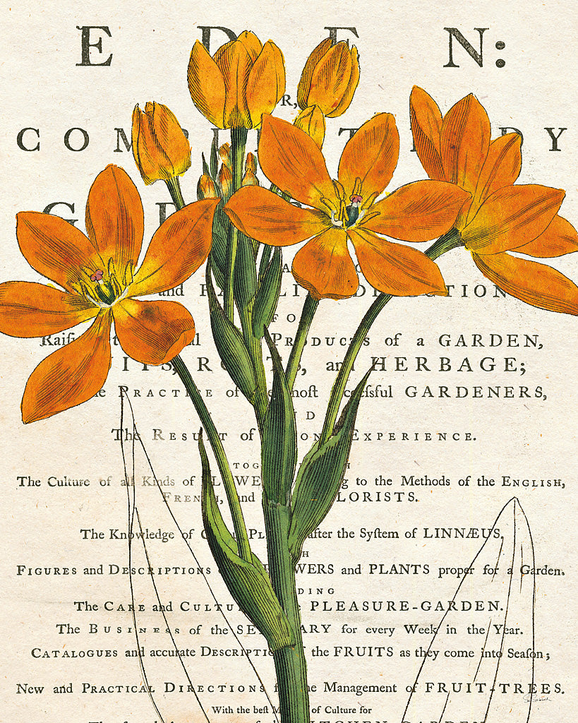 Invite an air of botanical elegance and charm to your living space with our vintage-inspired floral art print, perfect for accentuating any wall decor. This exquisite piece features a stunning bouquet of orange blooms set against a backdrop of antique text, offering an evocative fusion of natural beauty and historical allure. The detailed illustration of the flowers, brimming with vibrant hues and intricate line work, captures the essence of a bygone era, making it an ideal choice for those looking to add a touch of nostalgic sophistication to their home or office. Crafted with the highest quality in mind, this art print is not only a visual treat but a testament to timeless design. It would seamlessly complement a wide range of interior styles, from classic to contemporary, rustic to shabby chic. Whether mounted in a sleek frame above your mantle or grouped in a gallery wall collection, this piece is certain to captivate and serve as a conversation starter. For enthusiasts of floral wall art, vintage prints, and botanical illustrations, this art print represents the perfect blend of elegance and history, infusing your space with a serene and scholarly ambiance. Add it to your collection today and enjoy the serene beauty of flowers that never fade.For more art by Sue Schlabach click here.