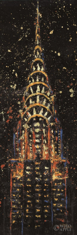 Elevate your home decor to new heights with this striking vertical art print, a captivating depiction of an iconic skyscraper, masterfully rendered with a chiaroscuro technique that juxtaposes luminous highlights against a deep, somber background. This architectural artwork brilliantly captures the awe-inspiring essence of urban design, featuring the radiant lit windows and the intricate neo-Gothic details of its towering spire, framed by a night sky speckled with golden flecks reminiscent of a starlit sky or gently falling snow. Ideal for lovers of cityscapes and modern wall art, this print can act as a dramatic focal point in your living room, office, or study. Its tall, narrow format makes it a perfect choice for those challenging spaces where wider canvases won't fit, while its rich, dark palette pairs well with a range of interior styles, from contemporary minimalist to an industrial loft. Bring the grandeur of metropolitan skylines into your space with this exquisite piece of wall decor, sure to inspire conversations and add an element of sophistication to your collection of fine art prints. Whether you're looking to celebrate the bustling energy of urban life or simply searching for a unique statement piece for that empty wall, this print is a versatile and stylish addition to any art connoisseur's repertoire.For more art by Wellington Studio click here.