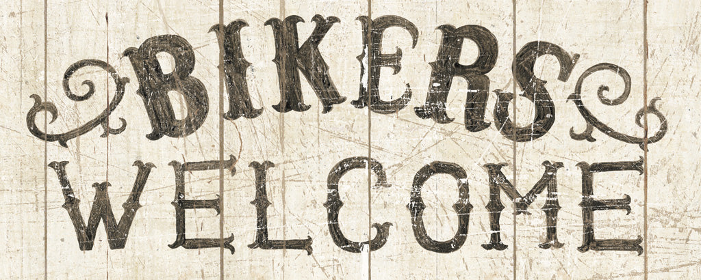 Elevate the ambiance of any room with this rustic and welcoming 'Bikers Welcome' Art Print, an indispensable addition for the motorcycle enthusiast's wall decor collection. This charming art piece exudes an inviting vintage vibe, featuring bold distressed typography against a textured wood-like background that simulates the time-honored appearance of weathered plank boards. It's a quintessential choice for creating a warm, friendly atmosphere in a biker's den, garage, man cave, or a local café where two-wheeled adventurers love to gather. Crafted with care, this print is designed to add personality to your interior while seamlessly blending with various decor styles from industrial to country chic. Available in multiple sizes, it's perfect to make a statement on its own or as part of a gallery wall ensemble. Let this art print rev up your home decor with its unique character and a clear message that all bikers are heartily welcome.For more art by Wild Apple Portfolio click here.