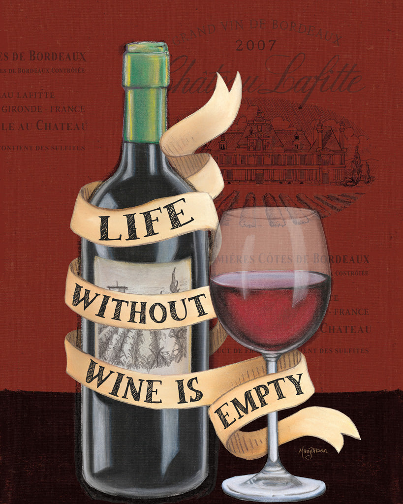 Elevate the ambiance of any room with this exquisite "Vino Inspired Still-Life" art print, an essential for wine lovers and connoisseurs of fine wall decor. Introducing a blend of classic charm and modern sophistication, this captivating artwork features a realistic rendering of a wine bottle and glass set against a rich, textured background reminiscent of a vintage Bordeaux wine label. The boldly scripted message "Life without wine is empty" playfully wraps around the bottle on aged parchment-like banners, offering a whimsical touch and a universal nod to the joy of winemaking and tasting. Perfect for dining areas, kitchens, or any space in need of a touch of elegance, this art print is a conversation starter and a testament to the timeless appeal of wine culture. Ideal for gifting or as a centerpiece in your own decor collection, this print marries the best of culinary art and home enhancement.For more art by Mary Urban click here.