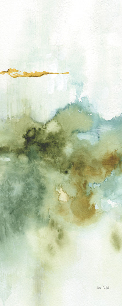Elevate your space with the serene beauty of our Abstract Watercolor Landscape Art Print. This exquisite piece embodies tranquility with its soft blend of earthy greens, calming blues, and gentle gold accents. The fluid watercolor strokes evoke the natural ebb and flow of nature's landscapes, making it a perfect complement to any room seeking a touch of organic elegance. Crafted with exceptional attention to detail, this vertical print draws the eye upward, making it an ideal choice for adding visual interest in smaller spaces or to serve as a focal point in a minimalist decor setting. Whether you're looking to enhance your living room ambiance, add a soothing touch to your bedroom, or bring inspiration to your office, this versatile wall decor seamlessly fits a variety of interior styles. Our premium-quality art print is produced on archival paper, ensuring long-lasting vibrancy and fade resistance. It’s available in multiple sizes to suit any wall, framed or unframed, offering you the flexibility to tailor it to your aesthetic needs. Exuding modern sophistication, this wall art is a must-have for art aficionados and interior decorators alike, seeking that perfect blend of contemporary design and natural inspiration.For more art by Lisa Audit click here.