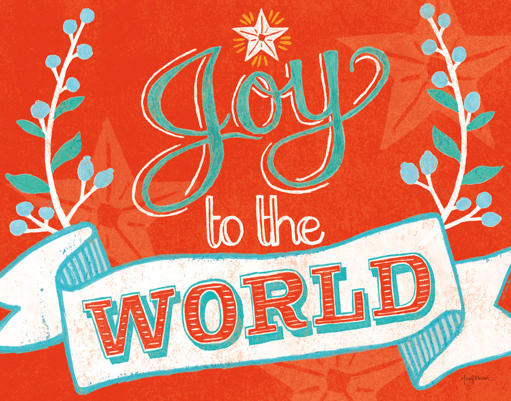 Embrace the festive cheer with our vibrant "Joy to the World" art print, a delightful addition to your holiday wall decor collection. This eye-catching piece boasts a bold, hand-lettered quote set against a warm, red-orange background that exudes the cozy ambiance of the season. The whimsical typography is accented with sprigs of blue-green foliage and a subtle, radiant star, adding a touch of nature and sparkle to the composition. The design is artfully encased within a vintage-style scroll banner, giving it a timeless feel that complements any home decor style, from traditional to modern. Perfect as a centerpiece for your Christmas decoration or as a thoughtful gift, this high-quality print will bring a joyful atmosphere to any room. Whether you're looking to enhance your living room, bedroom, or office space, this art print will add a splash of color and holiday spirit. The use of stylized elements and a unique color palette ensures that this piece stands out, making it an excellent choice for those searching for distinctive seasonal wall art. Suitable for framing or hanging as-is, it's a versatile piece that caters to a wide range of tastes and settings. Add this charming art print to your collection and let its message of joy resonate throughout your world.For more art by Mary Urban click here.