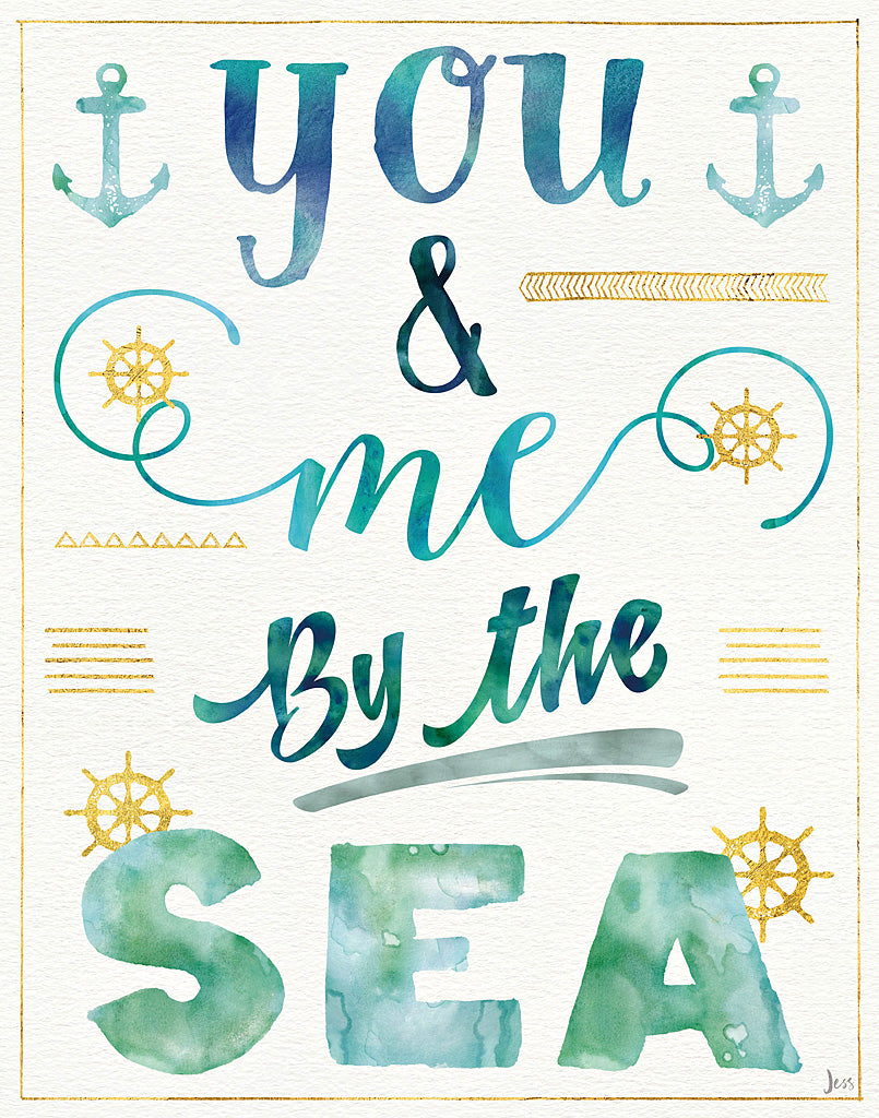 Bring the essence of the tranquil sea to your space with our captivating "You & Me By The Sea" art print. This charming piece of wall decor features elegant watercolor typography that beautifully captures the romantic allure of the ocean. Each letter is adorned with nautical embellishments, including anchors and ship's wheels, artfully blending sea-blue hues with touches of golden accents for an added splash of luxury. The textured paper appearance adds depth and a tactile quality to the print, suggesting the feel of an authentic watercolor painting. Ideal for coastal-themed interiors or as a heartfelt gift for that special someone, this marine-inspired art piece will infuse any room with love and serenity. Hang this oceanic art print in your living room, bedroom, or beach house to create an inviting and peaceful atmosphere, reminding you of blissful days spent by the shore.For more art by Jess Aiken click here.