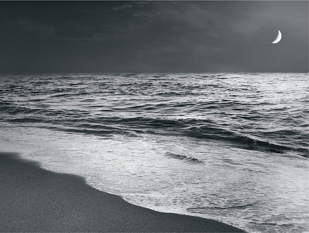 Reproduction of Moonrise Beach BW Crop by Sue Schlabach