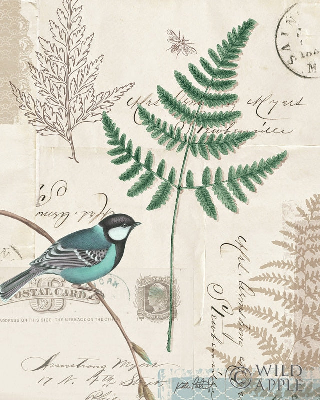 Adorn your living space with the delicate touch of nature encapsulated in our Vintage Botanical and Bird Art Print. This elegantly crafted piece brings a blend of natural beauty and old-world charm to your wall decor collection. The artwork features a beautifully illustrated bird perched gracefully on a branch, surrounded by exquisitely detailed fern leaves and wisps of floral elements. The backdrop, reminiscent of an aged postcard adorned with vintage handwriting and classic postal stamps, adds a layer of nostalgic allure. Perfect for those who appreciate the artistry of flora and fauna, this print will seamlessly integrate into both modern and traditional decors, serving as a focal point or a subtle addition to a gallery wall. It's an ideal choice for creating a serene atmosphere in your bedroom, living room, or home office. Whether you're a bird watcher, a lover of vintage aesthetics, or simply searching for a sophisticated and timeless piece of wall art, this print is a match for your aesthetic needs. Printed on high-quality material to capture the crispness of the imagery, the art is ready to frame and will maintain its charm for years to come. Embrace the tranquility and beauty of nature with this must-have addition to your wall decor ensemble.For more art by Katie Pertiet click here.