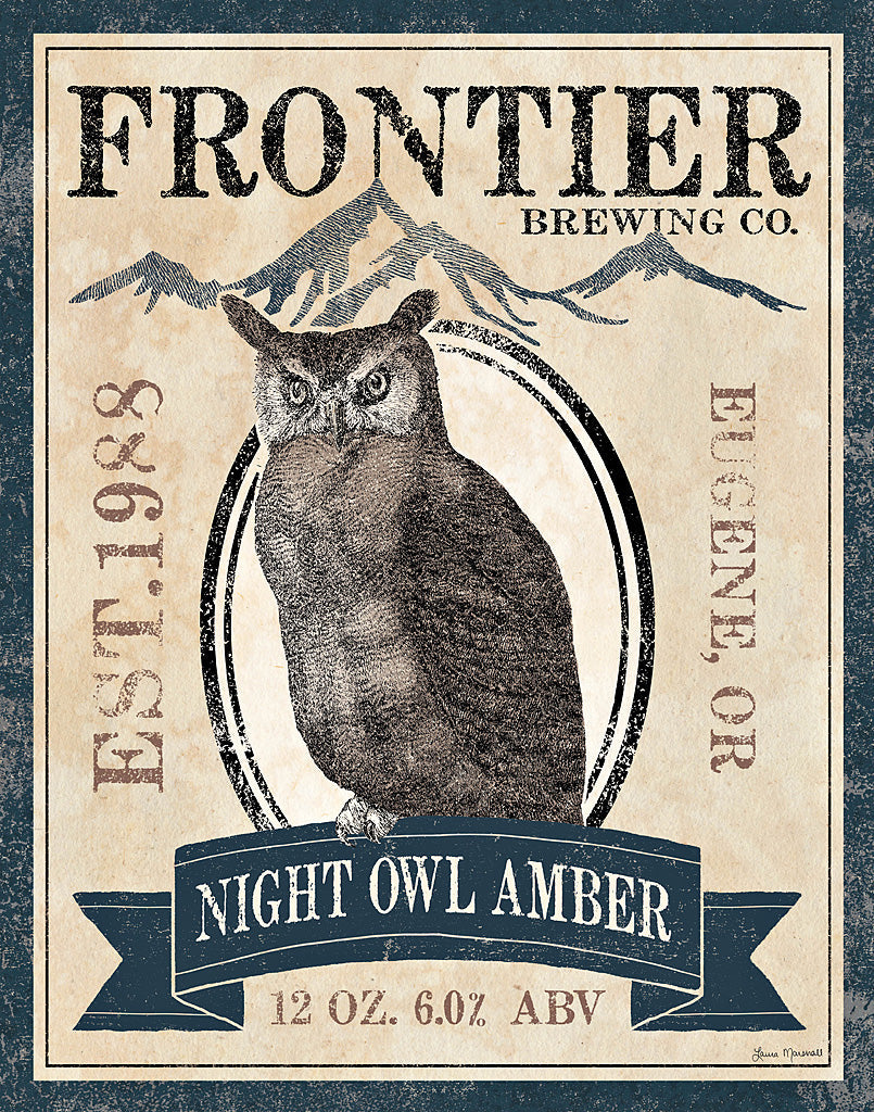 Elevate your living space with the nostalgic charm of our vintage-inspired "Night Owl Amber" art print, perfect for adding a touch of rustic elegance to any wall decor ensemble. This captivating print features a stately owl perched majestically against an antiqued paper-like background, surrounded by the authentic-looking branding of the fictional Frontier Brewing Co. Based out of Eugene, OR, this artful creation suggests a rich history with its crafted 1988 establishment date, offering an old-world aesthetic that speaks to beer and wildlife enthusiasts alike. The classic typography and subtle color palette lend a timeless quality, making it an ideal choice for those seeking to infuse their home, office, or personal bar with a sense of tradition and Americana. Whether it's mounted within a sleek frame in a minimalist apartment or hung as part of a gallery wall in a cozy study, this owl-themed print stands out with its 12 oz and 6.0% ABV details, imbuing an authentic brewery advertisement vibe. Crafted with an eye for detail and a nod to historical brewery memorabilia, this art piece is not only a conversation starter but also a testament to the appreciation of artisanal design and animal symbolism in art. Add this piece to your collection of wall art for a distinguished look that complements a wide range of interior styles, from industrial to farmhouse chic.For more art by Laura Marshall click here.