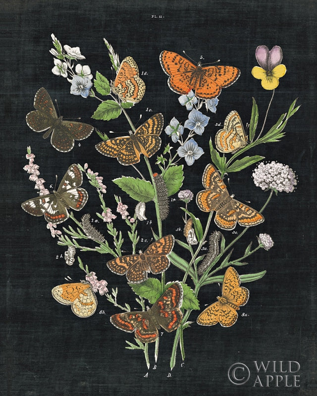 Adorn your walls with the enchanting charm of nature captured in this exquisite Vintage Butterfly and Floral Art Print. Ideal for those looking to enhance their home decor with a touch of elegance, this print showcases an array of meticulously detailed butterflies, each rendered in warm, natural tones that evoke a sense of calm and wonder. Set against a sophisticated dark background, the vibrant hues of orange, yellow, and brown butterflies create a captivating contrast, bringing the beauty of the outdoors into any living space, bedroom, or home office. The accompanying flora, featuring delicate white and pink blossoms and lush greenery, adds to the serene woodland vibe of this wall art. Intricate botanical illustrations evoke the timeless style of classical scientific drawings, making this art print a perfect choice for creating a focal point in a traditional, vintage, or cottagecore-themed room. Its butterfly motif also seamlessly fits into a nature-inspired nursery or a cozy reading nook that requires a touch of whimsical charm. Crafted with attention to detail, this art print is available in various sizes to suit your wall decor needs and arrives ready to be framed, offering a custom display option to match your unique style. Whether you're an art enthusiast, a lover of vintage aesthetics, or seeking the perfect gift for a nature admirer, this Vintage Butterfly and Floral Art Print transforms any space with its blend of classic elegance and natural beauty.For more art by Wild Apple Portfolio click here.
