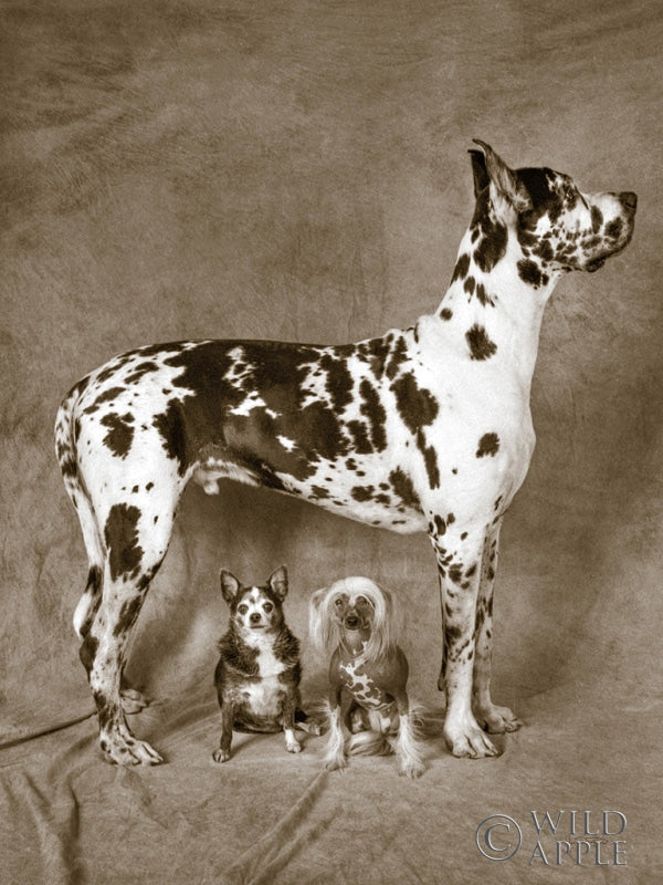 Elevate your home's ambiance with our captivating Vintage-Inspired Canine Collection Art Print, a must-have for dog lovers and a charming touch for any room. This exquisite wall decor showcases a trio of delightful dogs, each brimming with personality, poised against a soft, textured backdrop that underscores the print's timeless aesthetic. The stately Dalmatian, with its striking spotted coat, stands nobly alongside the endearing, bright-eyed Chihuahua and the elegant, long-haired companion, their serene expressions inviting a sense of calm and companionship into your space. Rendered in a classic sepia-tone, this high-quality art print adds a touch of nostalgia and elegance, making it the perfect addition to your living room, bedroom, or hallway. Whether you're curating a gallery wall or seeking a standalone piece, this image is sized to fit beautifully into a variety of spaces and frames. Embrace the warmth and whimsy of this charming canine portrait and make it the focal point of your wall art collection. It's an ideal gift for pet enthusiasts or a heartfelt addition to your own home decor ensemble. Add a touch of refined charm to your interior design today with this enchanting dog art print.For more art by Jim Dratfield click here.