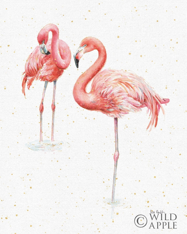Elevate your home's aesthetic with a touch of natural grace and a splash of warm color with our Flamingo Watercolor Art Print. This delicate and sophisticated wall decor features a pair of elegant flamingos set against a serene, speckled background that invokes a sense of gentle movement and a sparkle of tranquility. Each flamingo is masterfully rendered in soft pink hues, creating an inviting and soft ambiance that's perfect for a living room, bedroom, or even a nursery. The artwork captures the unique texture of watercolor, adding depth and character to your space while maintaining a light and airy feel. This art print is a fabulous choice for anyone looking to infuse their environment with the vitality of wildlife art and the soothing effects of nature-inspired elements. Perfect for bird lovers, tropical-themed rooms, or as an uplifting piece for any gallery wall, this Flamingo Watercolor Art Print serves as a focal point that harmoniously ties together your interior design with its dreamy and whimsical charm. It's ideal for those seeking to curate a peaceful retreat in their home with art that reflects both their love for fauna and an appreciation for delicate artistry.For more art by Lisa Audit click here.