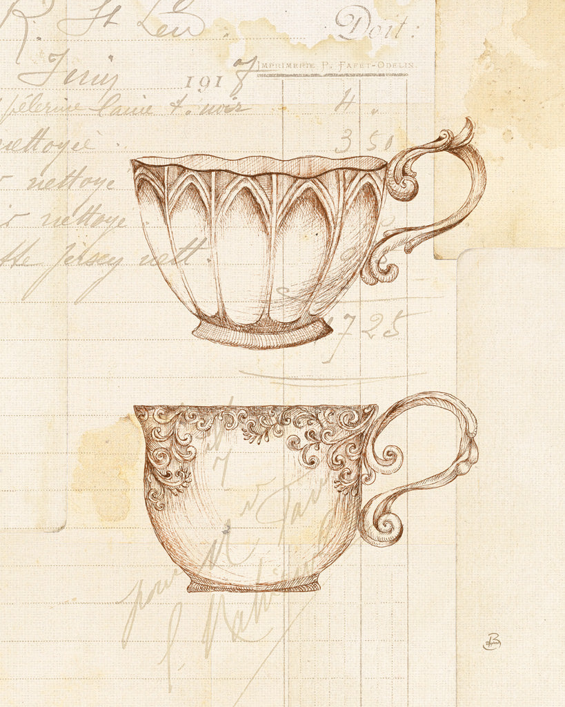 Decorate your space with timeless elegance using our Vintage-Inspired Cup and Bowl Art Prints, a collection that brings a touch of classic charm to your interior decor. These sophisticated pieces feature meticulously hand-drawn illustrations of an ornate cup and bowl set against a backdrop of antique script and ephemera. The sepia-toned sketches echo the craftsmanship of a bygone era, perfect for adding a sense of history and refinement to your living room, dining area, or study. The art prints are designed to blend seamlessly with both modern and traditional decors, making them a versatile choice for anyone looking to enhance their home with vintage wall art. With delicate line work and attention to detail, the illustrations appeal to collectors and enthusiasts of antiquities and fine tableware. Our high-quality art prints are available in various sizes to accommodate different spaces and preferences, and they are printed on premium paper stock, ensuring longevity and rich, vibrant detail. Ideal for gallery walls, these prints can stand alone as statement pieces or complement a curated collection of artwork. Whether you're a connoisseur of vintage designs or seeking to add a touch of sophistication to your home office or breakfast nook, these Vintage-Inspired Cup and Bowl Art Prints are a sublime selection. Shop now to bring the allure of historic aesthetic sensibilities into your contemporary living space.For more art by Daphne Brissonnet click here.
