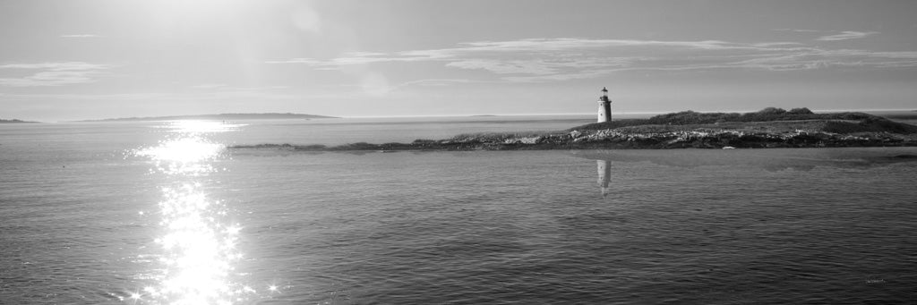 Elevate your home with the serene beauty of our coastal-themed art print, a timeless black and white photograph capturing the tranquil essence of a seaside scape. This panoramic wall decor showcases a picturesque lighthouse standing proudly on a rugged promontory, gazing out over the sparkling waters that stretch into the horizon. The sun's reflection dances across the waves, adding a radiant charm to the monochromatic palette. Perfect for those who appreciate nautical decor or wish to inject a sense of calm into their living space, this lighthouse art piece is an ideal addition to any room seeking a touch of elegance and maritime allure. Our high-quality art print is designed to bring the peacefulness of the ocean into your home or office space. It's an exquisite choice for collectors of fine photographic prints and admirers of minimalist wall art. Whether displayed in your living room, bedroom, or as part of a gallery wall, this striking seascape embodies sophistication and will captivate viewers with its simple yet profound beauty. This print is not just a piece of wall art, but a window to the serene coastal life, inviting viewers to pause and reflect on the vast beauty of nature.For more art by Sue Schlabach click here.