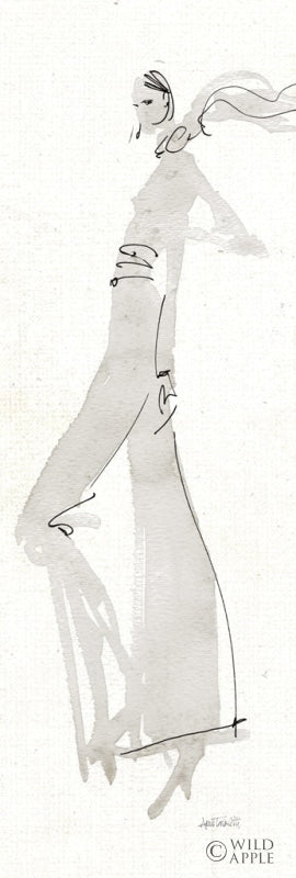 Elevate the aesthetic of any room with this captivating and elegant fashion illustration art print, perfect for those who appreciate the beauty of minimalism and the timeless grace of fashion sketches. This chic wall decor features the delicate lines of a slender figure adorned in a flowing dress, with a graceful stance that exudes confidence and style. The monochromatic palette of soft grays against a textured off-white background ensures that this piece will complement a wide range of color schemes and interior design themes, from contemporary to classic. Ideal for fashion enthusiasts, this sophisticated art print adds an air of haute couture to your living room, bedroom, dressing area, or studio. The subtle interplay of light and shadow, combined with the impressionist approach to the figure's silhouette, creates a sense of movement and effortless elegance that is sure to captivate and inspire. Whether you're curating a gallery wall or looking for a statement piece for above a console table, this fashion sketch will bring a touch of refined beauty to your home decor. Printed on high-quality art paper, this wall art presents not only a thoughtful gift for fashionistas and art lovers but also serves as a perfect choice for interior designers looking to add a dash of graceful artistry to their projects. With its versatile size, this print is ready to frame and hang, promising to be a treasured addition to any collection of fine art prints and wall decorations.For more art by Anne Tavoletti click here.
