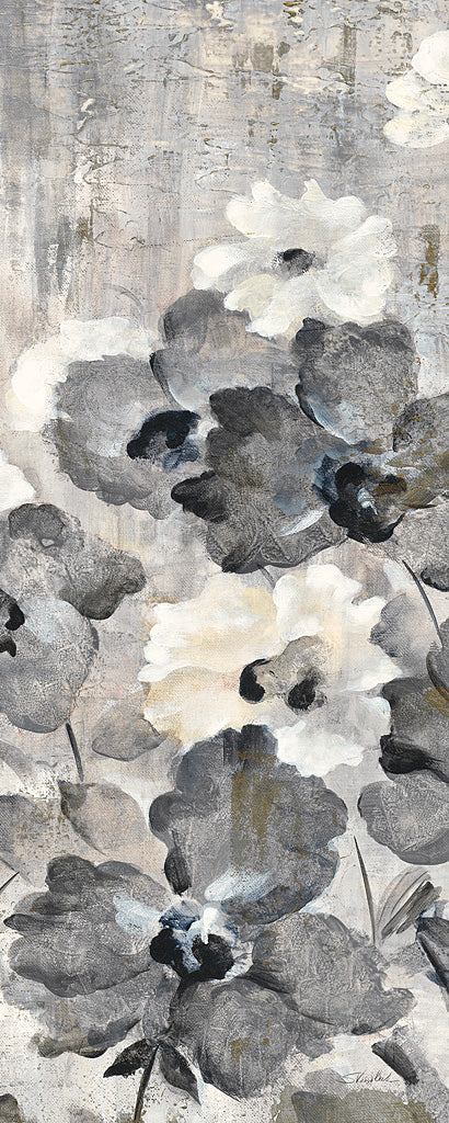 Elevate your home decor with this exquisite monochrome floral art print, a harmonious blend of style and tranquility perfect for creating a serene atmosphere. Crafted with delicate brush strokes, this piece features an elegant array of flowers portrayed in shades of grey with subtle touches of white, adding a timeless sophistication to any wall. The textured background suggests a distressed charm, reminiscent of a weathered mural or plasterwork, infusing your space with an understated yet captivating aesthetic. Ideal for lovers of contemporary botanical artworks and minimalist design, this print is a must-have for those looking to introduce a chic floral element to their living room, bedroom, or office decor. Bring the beauty of nature indoors and make a statement with this versatile wall art piece that effortlessly complements a variety of interior design themes from modern to traditional.For more art by Silvia Vassileva click here.