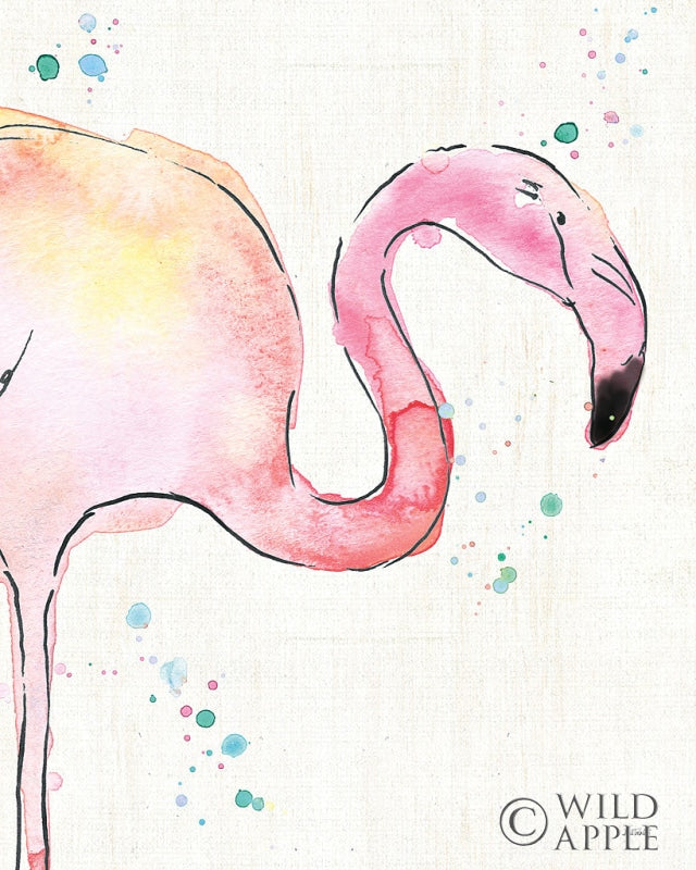Embrace the soothing elegance of nature with this exquisite watercolor flamingo art print, a delicate addition to your home wall decor collection. Rendered in gentle shades of pink and washed with a subtle warmth of yellow, this beautifully minimalist piece captures the graceful curvature of the flamingo's neck, creating an image that exudes tranquility and soft charm. Perfect for anyone looking to enhance their living space with a touch of wildlife art, this flamingo print lends itself to a serene atmosphere in your bedroom, living room, or office. The splashes of light and airy blues and greens add a playful contrast, suggesting a hint of whimsy and creating a visual interest that's both refreshing and stylish. Crafted with exquisite attention to detail, this art print brings a blend of modern design and natural beauty to any room. Whether you are updating your gallery wall, searching for unique gift ideas, or simply treating yourself to a stunning piece of flamingo wall art, this captivating print is designed to imbue your space with a peaceful and contemporary vibe. Integrate this charming artwork into your wall decor collection, and let the soothing presence of this watercolor flamingo be a source of inspiration and calm in your daily life. It's an ideal choice for those who appreciate nature-inspired art, elegant color palettes, and the understated allure of avian elegance.For more art by Anne Tavoletti click here.