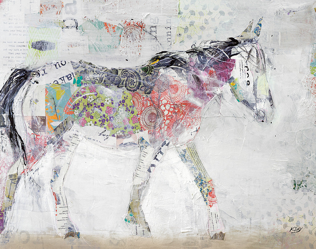 Elevate your space with this captivating mixed-media horse art print, a perfect blend of modern aesthetics and rustic charm for your wall decor collection. Designed to infuse any room with creativity and conversation, this unique piece showcases an intriguing patchwork of patterns, textures, and colors over a serene white backdrop. The exquisite collage elements within the horse silhouette create a mesmerizing visual narrative, making it an ideal choice for art lovers and equestrian enthusiasts alike. This art print joins your palette with its artistic flair, introducing elements of whimsical florals, abstract markings, and text snippets that suggest a rich tapestry of stories. It's a standout piece that's suitable for a variety of settings, from the contemporary home office to a cozy living room environment or even the sophistication of a boutique hotel lobby. Art connoisseurs will appreciate the intricate details and the harmonious balance between tranquility and vibrant life that the print exudes. It is available in various sizes to accommodate different spaces, ensuring it will perfectly complement your existing wall art. Whether you're looking to add character to a minimalist interior or wanting to complete a gallery wall with a touch of eclectic artistry, this mixed-media horse art print is a surefire way to enrich your decorative vision.For more art by Kellie Day click here.