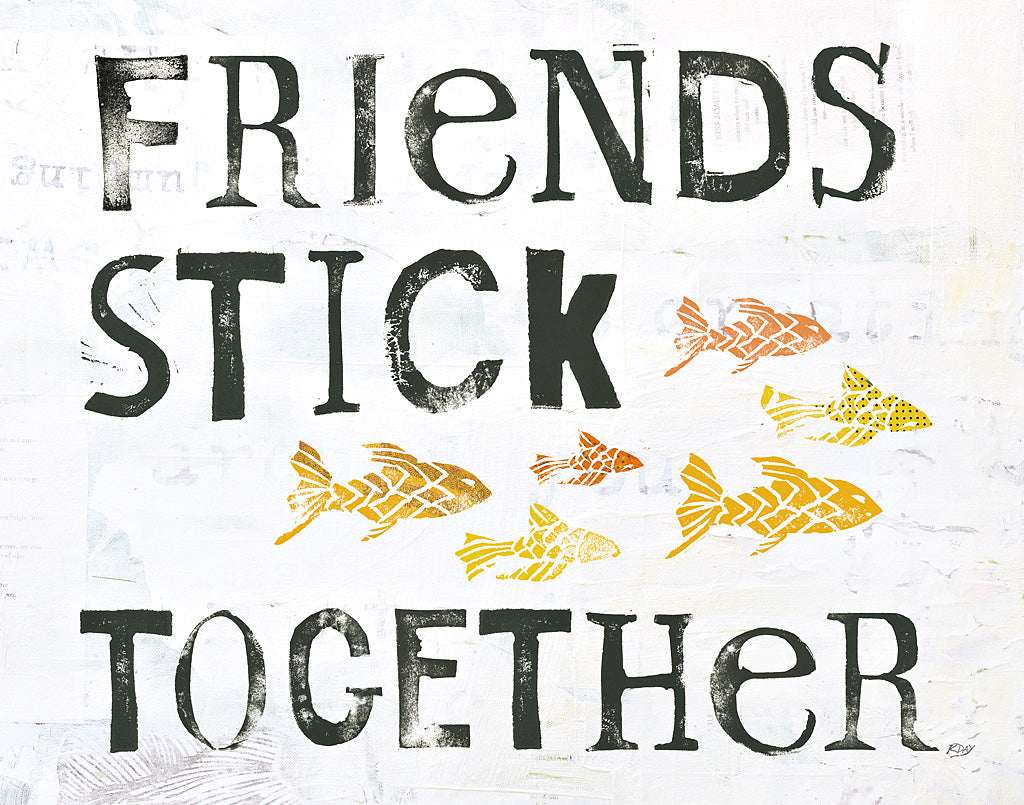 Elevate the ambiance of any room with our charming "Friends Stick Together" art print, a delightful addition to your wall decor collection. This heartwarming piece features an uplifting message rendered in bold, stylized lettering, set against a rustic white backdrop that mimics the texture of vintage plaster. Accompanying the text, a playful school of fish in warm shades of orange and yellow swim harmoniously, symbolizing friendship and unity. Perfect for a living room, bedroom, or even a cozy nook, this art print serves as a daily reminder of the strength and beauty of companionship. Whether you're looking to add a touch of whimsy to your home decor or searching for a thoughtful gift for a dear friend, this art print is an ideal choice. Create a welcoming and friendly space with this statement piece that effortlessly combines style and sentiment.For more art by Kellie Day click here.