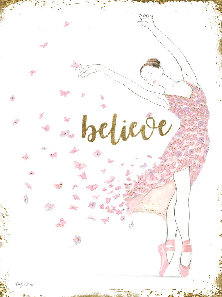 Adorn your walls with the grace and elegance of dance with our Inspirational Ballet Dancer Art Print, a captivating addition to any room seeking a touch of femininity and inspiration. This high-quality print features a beautifully sketched ballet dancer in mid-pose, with delicate touches of pink and golden hues that bring to life her flowing dress and the whimsical butterflies surrounding her. The word "believe" is prominently displayed in a gentle script, adding a motivational element to this stunning piece. Crafted with attention to detail, this wall decor is perfect for ballet enthusiasts, those who appreciate the arts, or anyone looking to infuse their space with a serene and uplifting vibe. Whether you're enhancing your living room, bedroom, or even a dance studio, this art print serves as a daily reminder to hold onto hope and believe in the beauty of dreams. It's an ideal gift for dancers, instructors, or anyone who holds dance dear to their heart. Create a gallery wall of dreams by pairing this print with other dance-themed or motivational artwork from our collection. Printed on high-quality paper with archival inks, this piece ensures long-lasting vibrancy and will maintain its beauty for years to come. Start transforming your home into a sanctuary of art and positivity with our Inspirational Ballet Dancer Art Print today, and let the spirit of dance fill your space with joy and elegance.For more art by Emily Adams click here.