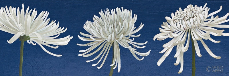 Elevate the ambiance of any room with this exquisite triptych art print featuring a trio of elegant white spider chrysanthemum flowers against a deep blue background. The stunning contrast of the delicate petals and the bold canvas makes this wall décor a captivating choice for those looking to enhance their home with a touch of botanical beauty and modern flair. Each bloom in this series of three is intricately detailed, showcasing the natural symmetry and grace that chrysanthemums are known for. Perfect for creating a serene focal point in your living room, bedroom, or office space, this high-quality print brings the calming essence of nature indoors. An ideal find for enthusiasts of floral artwork and contemporary design, this piece is sure to add sophistication and interest to your wall art collection. Whether you're curating a gallery wall or simply searching for that perfect standalone statement piece, this spider chrysanthemum print will infuse your space with style and tranquility.For more art by Kathrine Lovell click here.