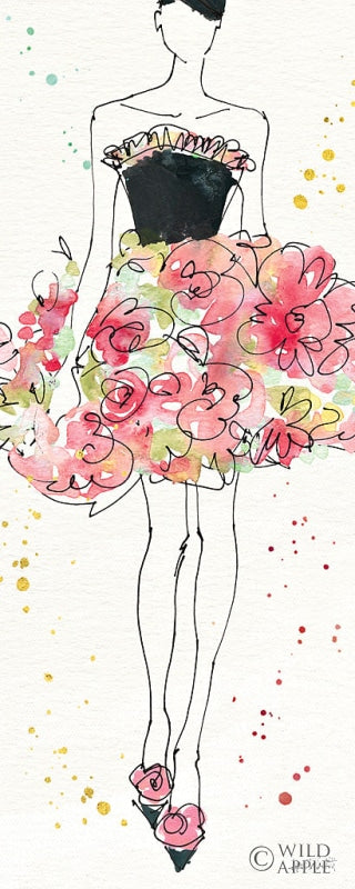 Beautify your living space with this enchanting floral fashion art print, an exquisite addition to any wall decor collection. Featuring a whimsical design that portrays an elegant figure adorned with a lush, vibrant flower skirt, this piece blends the delicate lines of fashion illustration with the organic beauty of blossoming florals. The art print pops with an array of soft pinks, greens, and subtle yellow accents, reminiscent of a spring garden in full bloom. Crafted with artistic flair, the illustration exhibits a unique contrast between the sharp black ink outlines of the model's silhouette and the softer, watercolor splashes that make up the floral arrangement. This creates a visual texture that's both eye-catching and sophisticated. Perfect for adding a touch of femininity and botanical charm to your bedroom, living room, or home office, the print is versatile enough to complement a range of interior styles from modern to classic, making it an ideal choice for interior decorators and art enthusiasts alike. Whether you're looking to invigorate a drab wall or searching for the perfect gift for the fashion-savvy gardener in your life, this art print is sure to inspire and delight. Elevate your home's aesthetic with this chic and timeless piece of wall art that will serve as a conversation starter for years to come.For more art by Anne Tavoletti click here.