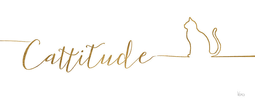 Elevate your living space with a touch of feline finesse, thanks to our charming "Cattitude" art print. This minimalist yet expressive piece features a sleek silhouette of a poised cat paired with the whimsical cursive script that spells out 'Cattitude', both rendered in an elegant gold tone that exudes sophistication and a playful spirit. Perfect for cat lovers and enthusiasts of chic, contemporary wall decor, this art print adds a subtle hint of personality and style to any room it graces. Ideal for creating a focal point in your living room, bedroom, or even your office space, this print serves as an irresistible conversation starter. Whether you're looking to infuse your home with a bit of humor, elegance, or simply a love for pets, this gorgeous print captures it all. Don't miss the opportunity to enhance your home's ambiance with this trendy and stylish addition to your wall art collection.For more art by Veronique Charron click here.