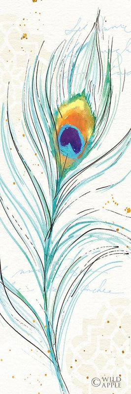 Add a touch of elegance and natural beauty to your home with this exquisite peacock feather art print. This delicately hand-painted illustration boasts soft, serene lines with vibrant pops of color, capturing the essence of the majestic peacock feather with a teal blue and rich golden-yellow eye spot, centered with a deep indigo core. The artwork is rendered on a textured background, accented with subtle script and playful splatters of gold, adding to its handmade charm. Perfect as a standalone piece or as part of a gallery wall, this print is an ideal choice for those looking to enhance their living space with unique, botanical-inspired wall decor. Bring sophistication to any room—whether it's in the living room, bedroom, or study—with this versatile and captivating art print.For more art by Anne Tavoletti click here.