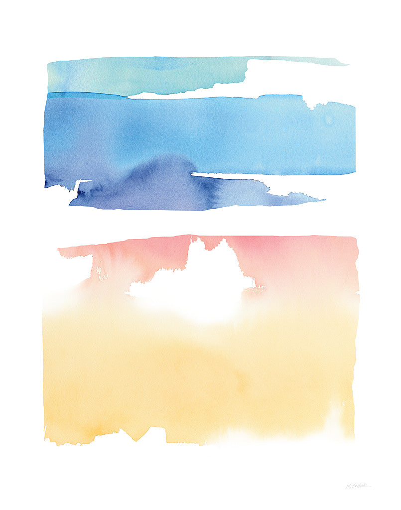 Elevate the ambiance of any room with our serene abstract watercolor art print set, a must-have addition to your curated wall decor collection. This exquisite pair features tranquil shades of sky and sea blues on the top print, effortlessly transitioning into warm sunset hues of soft coral and gentle yellow on the bottom piece. Each print captures the fluid, organic essence of watercolor, creating a soothing impression that harmonizes with minimalist, contemporary, or coastal design themes. Perfect for art enthusiasts looking to infuse a touch of calm sophistication into their home or office, these prints come in a variety of sizes to suit your space. Whether displayed side by side or individually, they create a striking focal point that complements sleek white frames, gallery walls, or even as part of a larger statement installation with abstract and modern art elements. Crafted using high-quality inks on durable, premium paper, these art prints are designed to maintain their beauty over time, ensuring your investment in home decor remains as timeless as the pieces themselves. Ideal for gifting or transforming your own interiors, these watercolor art prints are a chic and versatile choice for anyone seeking to enhance their environment with art that speaks to the serene beauty of color and form.For more art by Mike Schick click here.