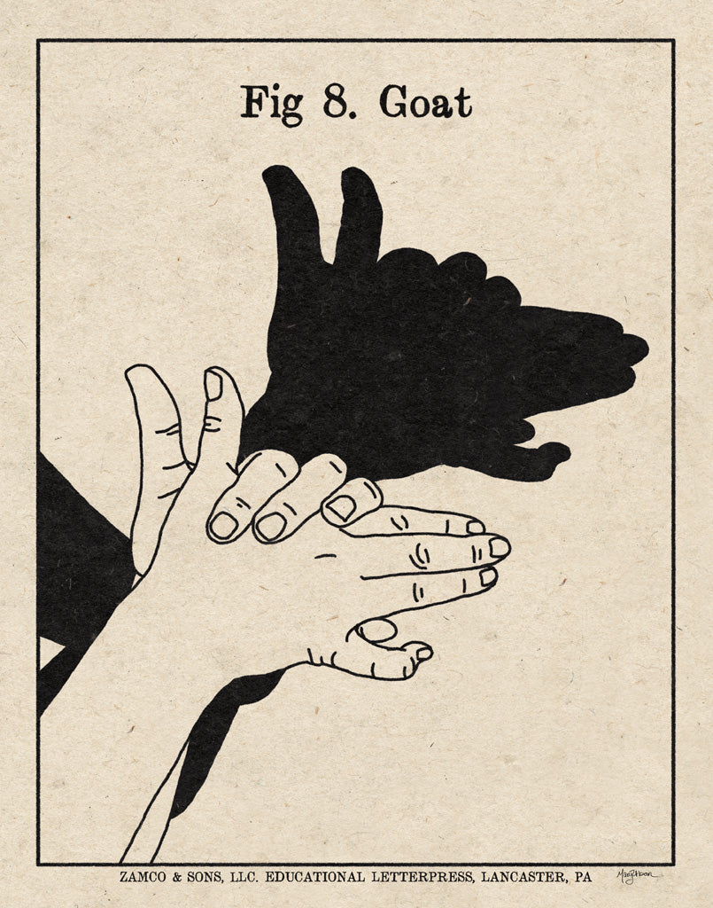 Elevate the aesthetic of your home or office with our striking "Vintage-Inspired Shadow Puppet Goat Art Print". This unique wall decor piece captures the whimsical charm of traditional shadow play with a beautifully depicted hand gesture mimicking a goat silhouette, set against a vintage paper background for an authentic old-world feel. Expertly designed to blend the nostalgic appeal of educational letterpress with contemporary art, this print is titled "Fig 8. Goat" indicating its place in a series of similar educational or illustrative artworks. Its monochromatic palette and bold contrast make it an eye-catching addition to any gallery wall, eclectic living space, or a child's educational playroom. Embrace the enchanting simplicity of shadow art with this delightful print, perfect for those who appreciate a blend of education, history, and art. Whether you're seeking to create a focal point in a minimalist setting or to complement a rich, vintage-inspired interior, this art piece is an effortless choice. Crafted with care, our art print makes for a thought-provoking gift for art enthusiasts, educators, or anyone with a penchant for the unique and the timeless. Add a touch of creativity and conversational charm to your wall decor collection with this enchanting shadow puppet goat art print.For more art by Mary Urban click here.