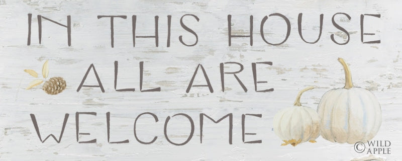 Elevate your home's ambiance with our charming 'In This House, All Are Welcome' Art Print, a delightful addition to your wall decor collection. This warm and inviting piece features an elegantly scripted message that sets a tone of hospitality and inclusivity, making it a perfect focal point for your entryway, living room, or dining area. Crafted with a rustic, shabby-chic aesthetic, this art print is adorned with beautifully illustrated pumpkins and a pine cone, suggesting a subtle nod to fall decor or year-round farmhouse charm. The gentle hues and distressed wood background texture seamlessly blend with various interior styles, from country cottage to modern minimalist. Measuring impressively to create an eye-catching display, this wall art is printed on high-quality material ensuring longevity and enduring visual appeal. Its versatile design and inspirational quote make it an ideal gift for housewarmings, holidays, or any occasion that calls for a touch of heartwarming artistry. Introduce this heartening and stylish art print to your home decor repertoire and let its message of welcome grace your walls, adding a touch of warmth and personality to your living space.For more art by James Wiens click here.