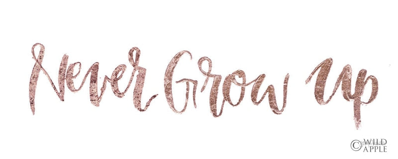 Elevate your interior with this enchanting 'Never Grow Up' cursive script art print, a perfect blend of whimsy and elegance for your wall decor collection. This exquisite piece features a graceful handwritten quote in a rich bronze glitter overlay, adding a touch of sparkle and inspiration to any room. Ideal for those looking to create a captivating focal point within a nursery, bedroom, or cozy reading corner, this art print serves as a gentle reminder of the joys of childhood and the timeless spirit of adventure. Crafted with care, it offers a durable and visually striking option for homeowners seeking to infuse their living space with a dose of charm and positivity. Whether you're looking to gift something special or enhance your own home atmosphere, this wall art print is a delightful choice for adding personality and a refreshing message to your wall art collection.For more art by Jenaya Jackson click here.