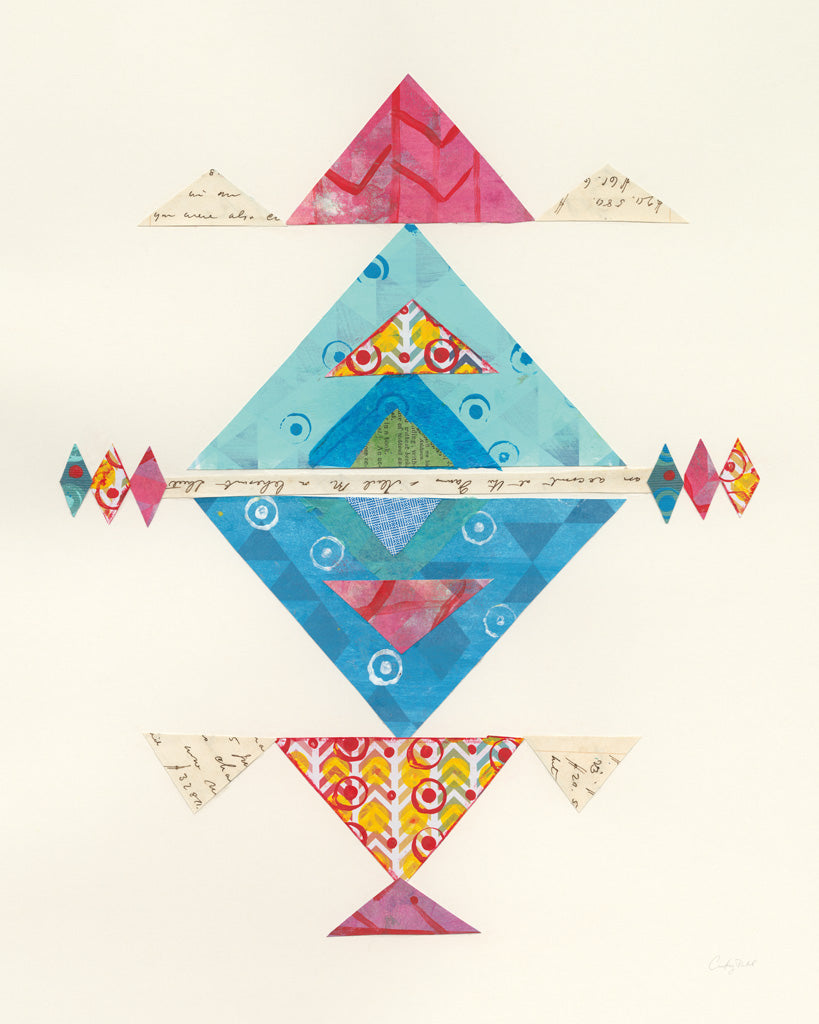 Elevate your living space with this exquisite Geometric Abstract Art Print, a harmonious fusion of vibrant colors and intricate patterns that will infuse your wall decor with a contemporary and artistic touch. This high-quality art print features a captivating array of geometric shapes, including triangles and diamonds that come together in a balanced and aesthetically pleasing composition. Each shape within the artwork is adorned with a unique mix of patterns and textures, incorporating elements of vintage manuscript writing, dynamic color swirls, and subtle polka dots to create a rich visual experience. The varied palette of warm reds, cool blues, and pops of yellow and green make this piece versatile enough to complement a wide range of home decor styles, from modern minimalist to eclectic and bohemian. Crafted with meticulous attention to detail, this wall art piece is printed on premium paper, ensuring sharp, clear images and a lasting finish. Perfect for a living room feature, a bold statement in a bedroom, or a sophisticated addition to your office space, this Geometric Abstract Art Print will captivate the eyes and spark conversations. Adaptable to various frame choices, whether you opt for a sleek and simple frame to let the art speak for itself or a more elaborate option to match your existing decor, this art print is sure to become a cherished part of your art collection. Add this must-have piece to your cart today and bring a touch of modern sophistication and timeless elegance to your wall decor collection, perfect for art enthusiasts, interior decorators,For more art by Courtney Prahl click here.