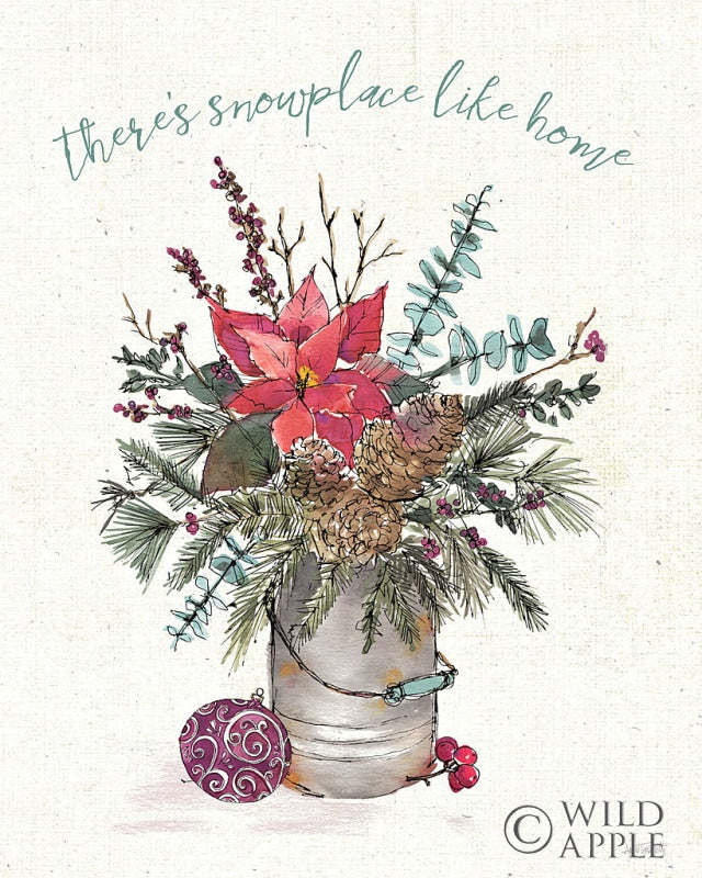 Bring a touch of rustic elegance to your home with our charming Winter Floral Bucket Art Print, the perfect addition to enhance your seasonal wall decor collection. This captivating art piece showcases a beautifully illustrated galvanized bucket overflowing with a vibrant winter floral arrangement. The delicate sketch features a luscious poinsettia at its heart, surrounded by sprigs of holly, festive pine cones, and crisp evergreen branches, all hinting at the joys of winter and the holiday season. Accented by a whimsical Christmas ornament and a playful message, "there's snowplace like home," this print weaves a tale of warmth and comfort during the chillest months of the year. Printed on high-quality, textured paper, the illustration's intricate line work and soft watercolor hues create a sense of nostalgia, ideal for creating a cozy atmosphere in your living room, dining space, or entryway. Whether you're looking to uplift your own holiday decor or searching for the perfect gift for a loved one, this art print strikes the right balance between festive cheer and sophisticated style. Its versatile design ensures that it complements a variety of interior design themes, from modern farmhouse to traditional and contemporary spaces. Enhance your home's ambiance with this winter-inspired art piece, a must-have for those who enjoy seasonal decorative prints and appreciate the beauty of hand-drawn illustrations. Each print is thoughtfully crafted to bring the essence of winter indoors, making it an essential part of your seasonal wall decor repertoire.For more art by Anne Tavoletti click here.