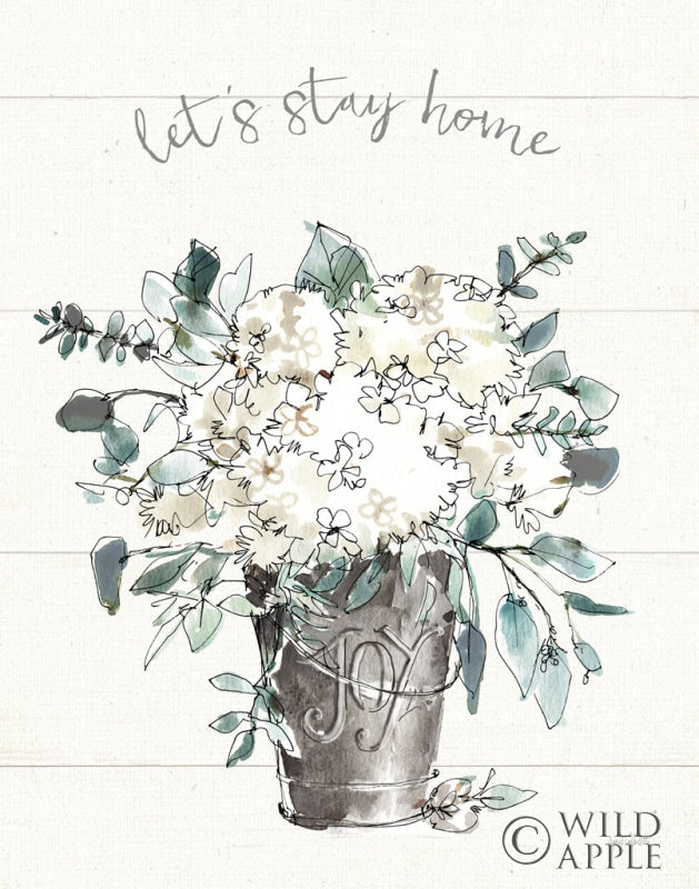 Discover the serene charm of our 'Let's Stay Home' floral art print, a perfect fusion of tranquility and elegance for your living space. This exquisite watercolor representation of a lush bouquet of flowers nestled delicately in a vintage 'Joy' embossed bucket brings a touch of nature's beauty into your home. The subtle hues and detailed sketches capture the essence of a peaceful and inviting haven, making it an ideal addition to your wall décor collection. Crafted with care, the art print showcases a timeless arrangement that complements a variety of decor styles, from modern minimalist to rustic farmhouse. The gentle script of 'let's stay home' envelops the composition in a cozy embrace, emphasizing the comfort and warmth your abode offers. Whether it's gracing the walls of your living room, bedroom, or creating a peaceful corner in your home office, this piece conveys a message of love and coziness. Elevate your interior design with this charming wall art, meticulously printed on high-quality material for durability and enduring beauty. The soft, neutral palette ensures that it will blend seamlessly with your existing décor, while making a subtle yet impactful statement. Invite a sense of calm and contentment into your home with this delightful print that reminds you of the joy found in simple pleasures and the comfort of your own sanctuary.For more art by Anne Tavoletti click here.