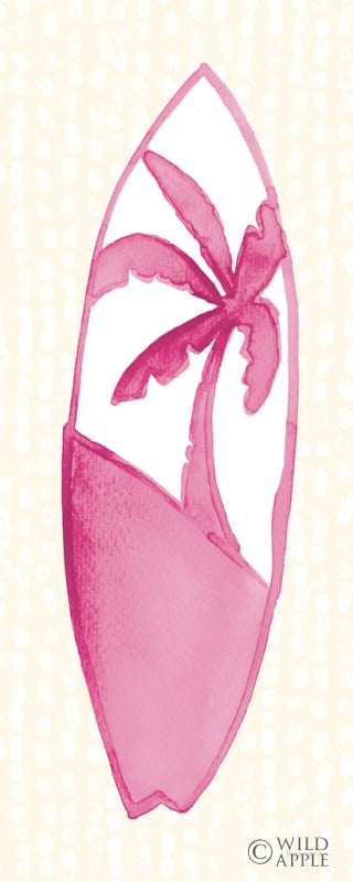 Add a splash of serenity and tropical bliss to your living space with our unique Surfboard and Palm Tree Watercolor Art Print. This exquisite wall decor piece captures the carefree essence of a beachside escape, featuring a beautifully stylized surfboard in a soft pink hue against a gleaming white background sprinkled with subtle polka dots for that extra dash of whimsy. The surfboard's design is elegantly divided into two sections, with the top segment showcasing a delicate, watercolor palm tree silhouette that seems to sway gently with an island breeze. Perfect for those looking to infuse a touch of coastal charm into their home, this art print becomes a serene focal point in any room, from a breezy sunroom to a chic tropical-themed bedroom. Crafted with love and an eye for design, our art print is a must-have for surf enthusiasts and lovers of minimalist, yet expressive wall art. Whether you're sprucing up your home office or adding a calming element to your living room, this versatile piece suits a variety of decors including modern, bohemian, or nautical. Its tall vertical format is ideal for narrow walls, corner spaces, or grouped with other sea-inspired prints to create a personalized gallery wall. Make this fetching surfboard and palm watercolor print the newest addition to your collection of stylish wall decor. It comes ready to frame and is sure to invoke thoughts of sandy beaches, ocean waves, and the laid-back lifestyle that accompanies them. Hang it up,For more art by Mercedes Lopez Charro click here.