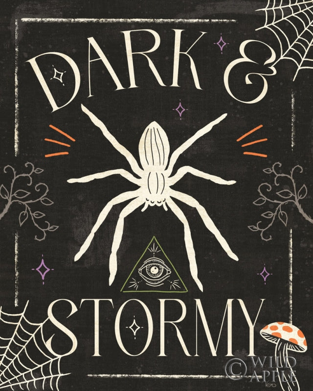 Add a touch of mysterious charm to your living space with our "Dark & Stormy" Gothic Art Print. Designed for aficionados of the enigmatic and admirers of gothic aesthetics, this bewitching wall decor piece features a boldly depicted spider, poised as if caught in mid-weave amidst its intricate web. The striking contrast of the spider against the dark, textured background makes it a captivating focal point. Surrounding the central figure, whimsical illustrations such as a bare, twisted tree, an iconic all-seeing eye within a triangle, and enchanting geometric accents give this art print an air of mystique and otherworldly allure. Accompanied by the handwritten-style uppercase lettering of "DARK & STORMY," it effortlessly manifests a spooky yet sophisticated vibe. Perfect for those looking to curate an atmosphere of gothic glam or dark academia in their home, office, or personal library, this art print is not only a conversation starter but also a testament to your unique taste in wall art. Embrace the darker side of elegance with this artful expression of moody motifs and intriguing design—ideal for tastemakers seeking to enhance their art collection with a piece that truly stands out. Crafted with the finest attention to detail, our "Dark & Stormy" art print is printed on high-quality material, ensuring the vividness of its visuals and longevity of its Gothic charm. Whether it's Halloween or you're crafting a year-round haven for the whimsically darkFor more art by Veronique Charron click here.