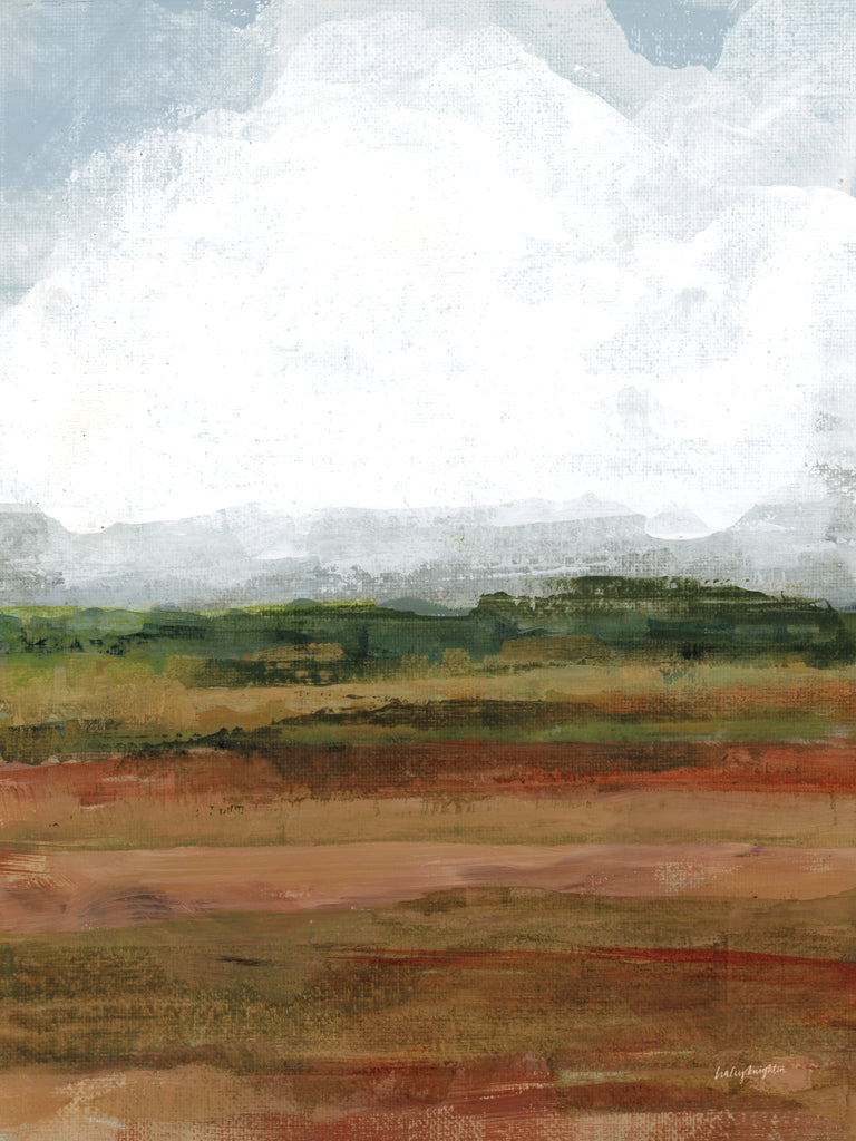 "A Kentucky Weekend I" by Haley Knighten is a compelling embodiment of abstract landscape art that captures the essence of pastoral serenity and rustic charm. The composition juxtaposes a textured sky, subtly nuanced with hues of blue and white, against a richly layered terrain that stretches towards the horizon. Knighten employs a muted yet earthy palette, with harmonious tones of green, brown, and ochre coalescing to evoke the fertile expanses of Kentucky’s countryside. The artist's brushwork is both deliberate and spontaneous, creating a dynamic interplay of light and shadow that imbues the scene with depth and movement. The work can be classified within the genre of contemporary impressionism, marked by its abstraction of natural forms and expressive manipulation of color. There is a timeless quality to this piece, as it transcends mere representation to evoke an emotional response, inviting the viewer to experience the tranquil beauty of a Kentucky weekend anew with each gaze. Such a reproduction print would be a sublime addition to any collection, offering a window into the idyllic rural heartscape that Knighten so masterfully encapsulates.For more art by Haley Knighten click here.