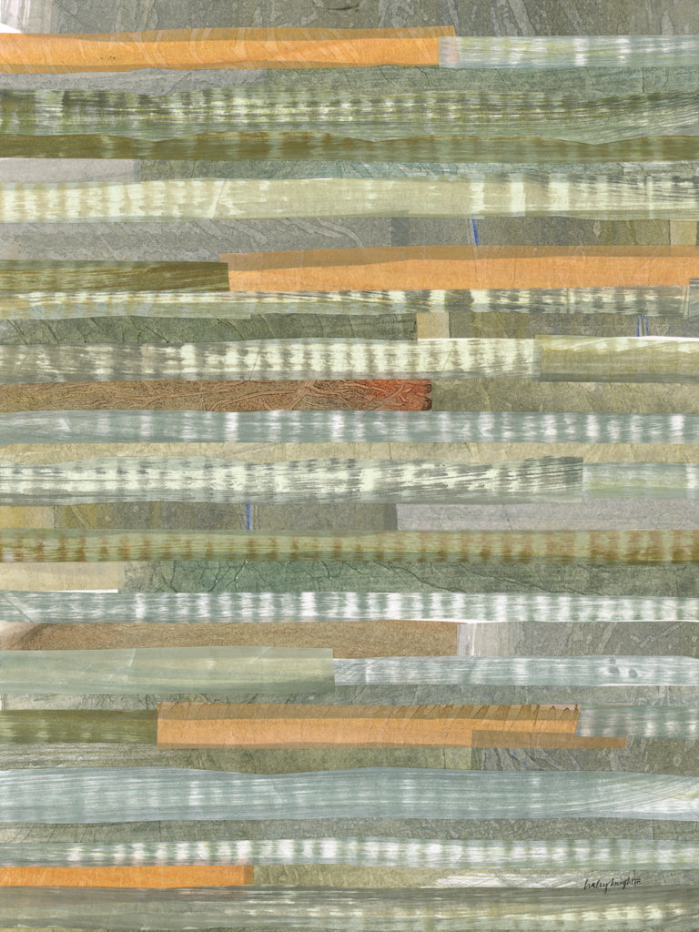 "River Trout Study II" by Haley Knighten is a masterful abstract representation of natural elements, specifically capturing the essence and the delicate beauty of river trout. The composition melds a variety of textures and hues that reflect the iridescent quality of fish scales and the flowing movement of water. Striking in its use of horizontal linear patterns, the artwork utilizes a palette of soft greens, muted blues, and earthy orange tones. These colors are interspersed with occasional subtle patterns and gradients that mimic the appearance of light reflecting off a trout's skin. The lines vary in thickness and opacity, creating a sense of rhythm and fluidity that evokes the dynamic interplay of light and water in natural habitats. Knighten’s technique appears as a harmonious blend of watercolor washes and intricate detailing, resulting in a visual tapestry that is both cohesive and varied. This juxtaposition of order and randomness mirrors the organic complexities found in nature. The repetition of horizontal bands may invite viewers to contemplate the continuous flow of a river, and the serene, yet ever-changing life that inhabits it. "River Trout Study II" can be classified as a piece of modern abstract art with a strong influence of biomorphic abstraction—a genre that draws inspiration from naturally occurring patterns and forms. This artwork would appeal to those who appreciate contemporary art with a connection to natural themes, offering a sophisticated and tranquil aesthetic that can complement a variety of interior spaces.For more art by Haley Knighten click here.