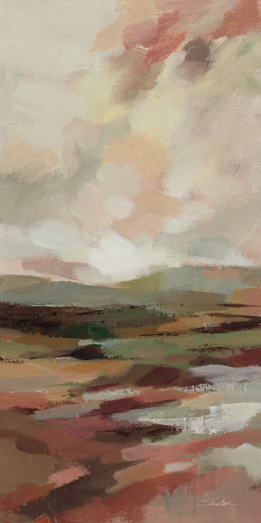 "Burgundy Sunrise II" by Silvia Vassileva is a compelling exploration of abstract expressionism, characterized by its dynamic interplay of color, texture, and form. The composition exudes a sense of fluidity and movement, masterfully capturing the ephemeral beauty of a sunrise moment through the artist’s distinctive lens. The piece vibrates with a palette dominated by warm, earthy tones—burgundy, umber, and sienna—intermixed with soft whispers of green and spectral hints of pale yellows and creams. These hues blend seamlessly, conveying the gradual awakening of a landscape bathed in the gentle embrace of dawn's early light. The brushwork is bold yet harmonious, a testament to Vassileva’s skillful manipulation of paint on canvas, inviting viewers into a meditative state as they experience the tranquillity of nature's transition between night and day. This artwork is a quintessential example of contemporary abstract art, merging the boundary between realism and abstraction. It does not merely depict a landscape; instead, it evokes the emotional and sensual experience of witnessing a sunrise, compelling the viewer to engage with the atmospheric subtleties and the vibrant depth of the piece. "Burgundy Sunrise II" serves as a bridge between visual observation and emotional response, offering an aesthetic experience that is both visceral and contemplative.For more art by Silvia Vassileva click here.