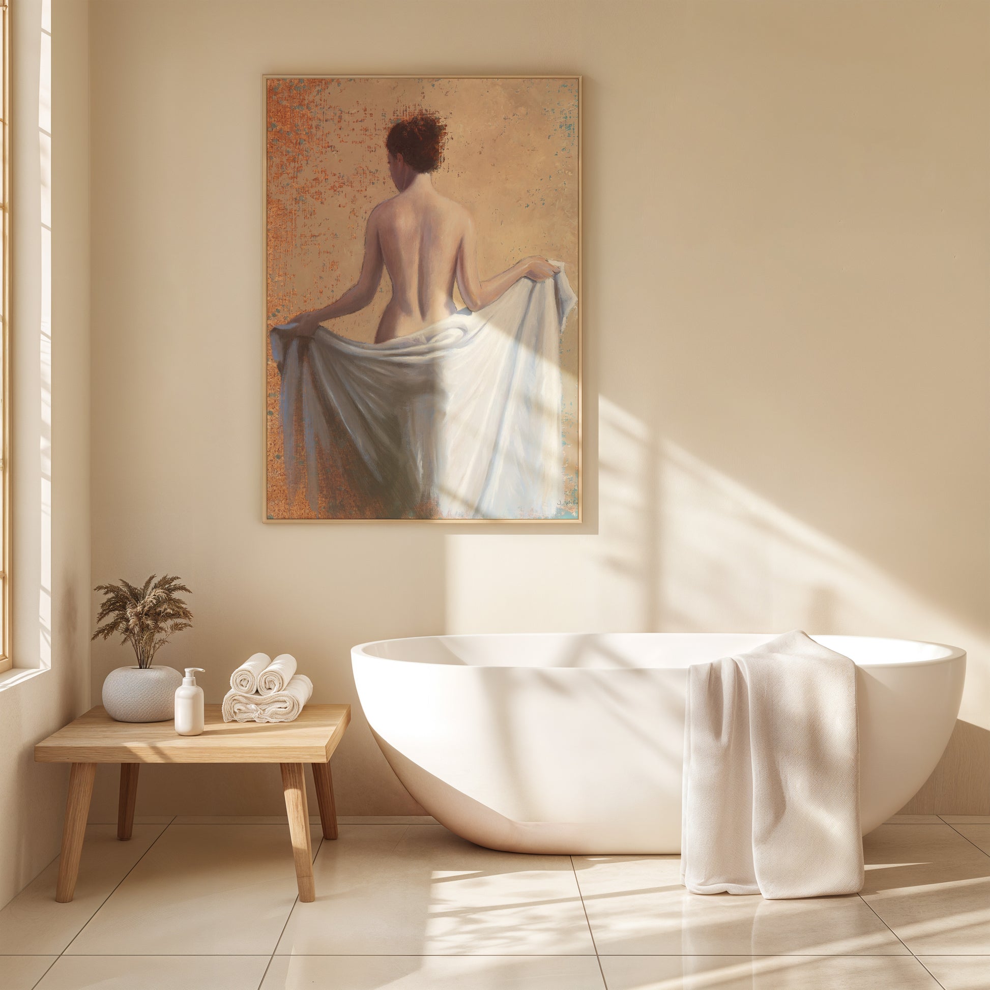 Elevate your home decor with our elegant and tranquil art print featuring a serene, classical portrayal of a figure draped in a soft white sheet against a warm, textural background. This evocative piece captures the grace and quiet beauty of the human form, rendered in soft pastels that convey a sense of calm and introspection. Ideal for those looking to add a touch of sophistication and a contemplative ambiance to their living space, bedroom, or private study, this exquisite print embodies timeless elegance. Crafted with high-quality materials to ensure longevity and vibrant colors, each print offers a piece of art that is both accessible and gallery-worthy. Whether you’re an admirer of classic figure painting, seeking a statement piece for your wall art collection, or looking to curate a peaceful and artistic atmosphere, this print is sure to enhance your interior with its subtle charm and artistic appeal. Perfect for art enthusiasts, interior decorators, or anyone looking to infuse their walls with a sense of refined beauty, this art print serves as an impressive focal point or a harmonious addition to a curated gallery wall. Transform your home into a haven of artistry and tranquility with this must-have piece for any discerning collector of elegant wall decor.For more art by James Wiens click here.